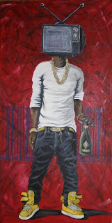 The artist says: “Currently my artworks reflect concerns about the epidemic of consumerism, which I experience in urban as well as rural spaces. Having been part of colonialism in the times of apartheid, I thought we would be free in the new South Africa. Now I am becoming more and more conscious of the effect that American influences are having on our people, especially the youth. This consumerism has become another form of imperialism, led by the United States of America.”